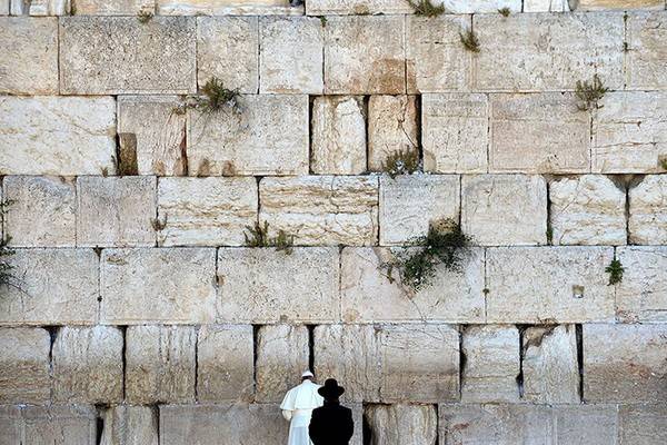 Папа Франциск молится у Стены плача с раввином Шмуэлем Рабиновичем в старом городе Иерусалима, Израиль. Фотография: Винченцо Пинто, AP.