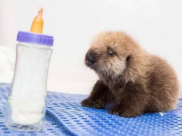 Пятинедельный детёныш калана осваивает резиновый коврик после прибытия в океанариум «Эббот» в Чикаго, США