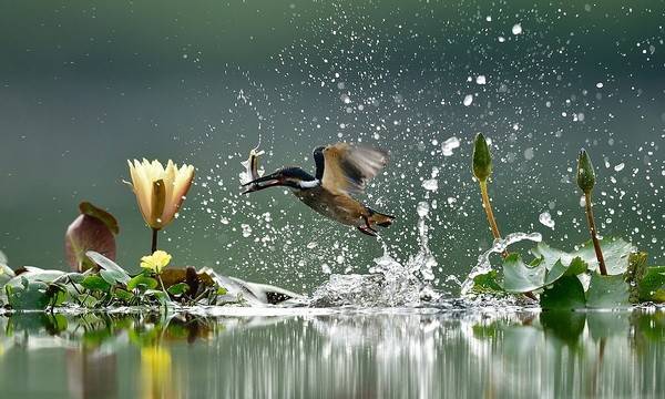 Обычным зимородок ловит рыбу близ Гури, Южная Корея. Красота неземная.