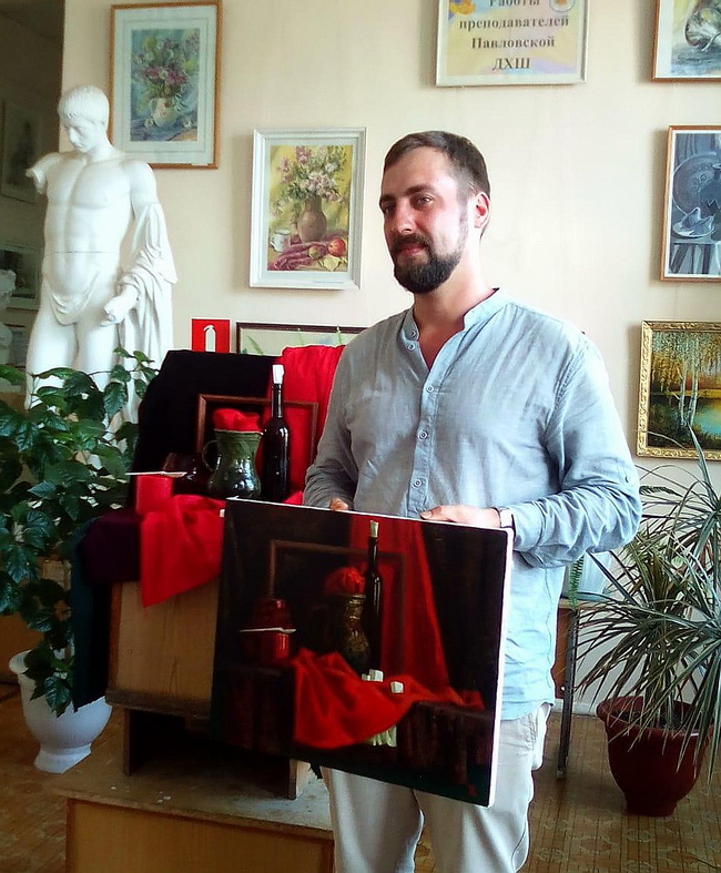 Преподаватель Санкт-Петербургского государственного академического института живописи, скульптуры и архитектуры имени И.Е. Репина Евгений Ячный провёл мастер-класс в Детской школе искусств города Павловска и подарил этому учебному заведению свою работу.