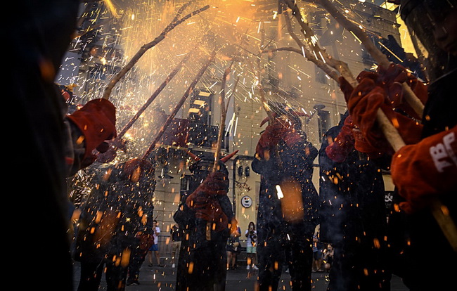 Окленд, Новая Зеландия. Фанаты Испании танцуют за пределами стадиона перед полуфинальным матчем между Испанией и Швецией во время чемпионата мира по футболу среди женщин в Австралии и Новой Зеландии.