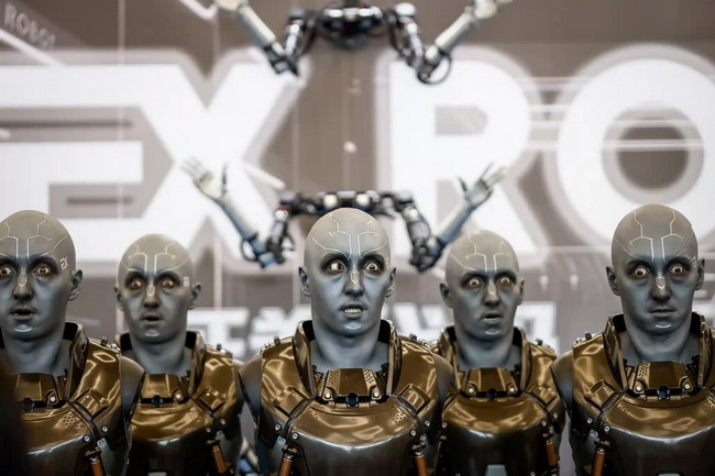 Пекин, Китай. Удивленных роботов заметили на ежегодной Всемирной конференции роботов.