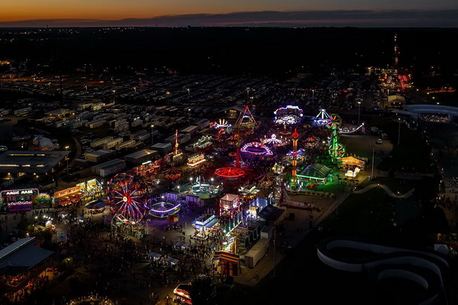 Вид с воздуха на Ярмарку штата Айова на закате 12 августа 2023 года в Де-Мойне, штат Айова.