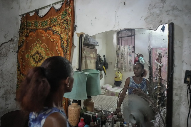 В Гаване один за другим рушатся старые дома. Мариселис Колас позирует в зеркале своей спальни в полуразрушенном особняке, где она живёт с пятью другими семьями, на улице Вильегас в Гаване, Куба. 64-летняя пенсионерка живёт в этом доме со своей 85-летней матерью уже 59 лет.