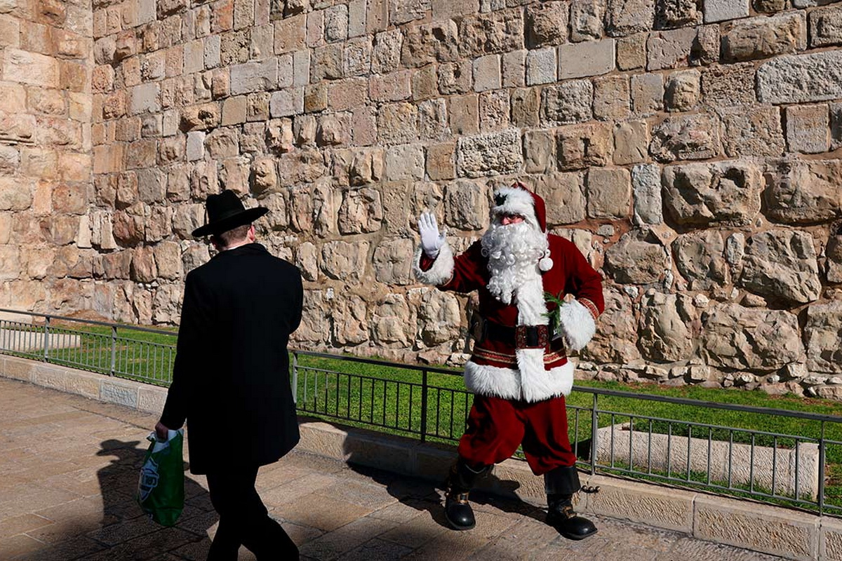 На главной полосе – фото агентства EPA. Рождество в Иерусалиме уже совсем скоро. Встреча ортодоксального еврея с Сантой рядом со старыми городскими стенами возле Яффских ворот в Старом городе 18 декабря 2025 года. Автор – Абир Султан. Будем верить, что снимок не постановочный, уж больно хорош.