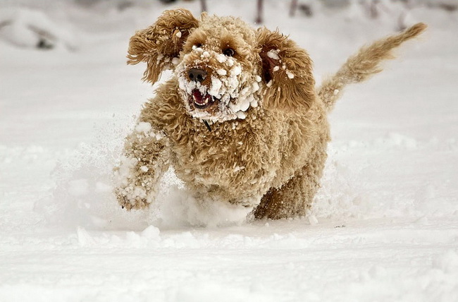 20 февраля 2026 года, Вена, Австрия. Собака резвится среди более чем 20 см снега, выпавшего в Вене за ночь и утром. Это, помимо прочего, привело к перебоям в утреннем движении транспорта.