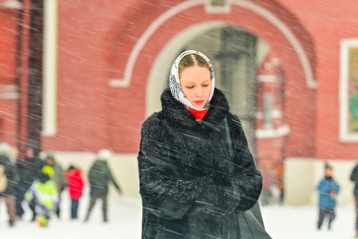Снимок на главной полосе: люди пробираются сквозь сильный снегопад в Москве. В этом году в российской столице выпало рекордное количество снега, а зима ещё не закончилась. Автор: Сефа Каракан (Anadolu Agency).