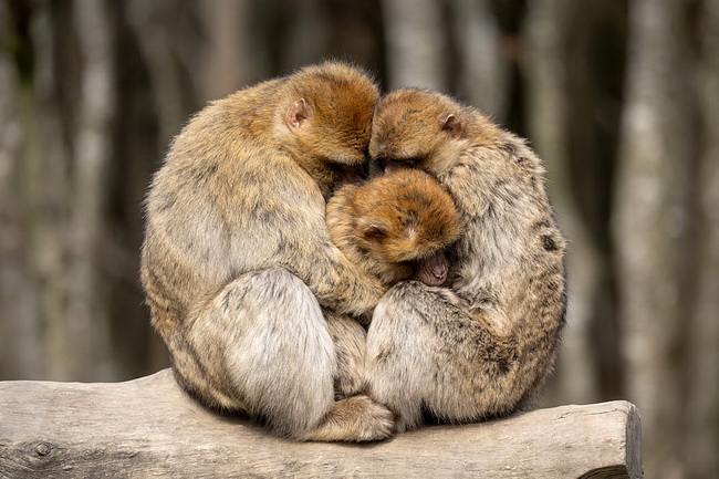Маготы (берберские макаки) в обезьяньем парке «Аффенберг Залем» в Германии.