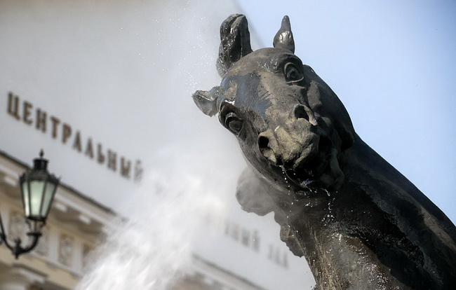 Весенняя промывка фонтана «Гейзер» в Москве.