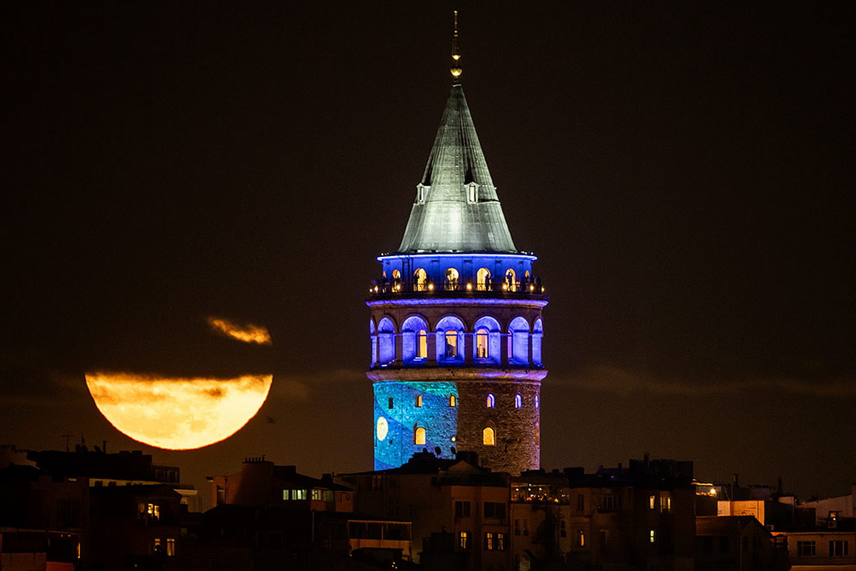 Это была неделя, когда весна ударно наступала на Северное полушарие, христиане-католики переживали Страстную пятницу, с мыса во Флориде запускали космический корабль к Луне. Мы же предпочли для главной полосы нейтральный, умиротворяющий снимок агентства Associated Press «Полная луна восходит за Галатской башней в Стамбуле».