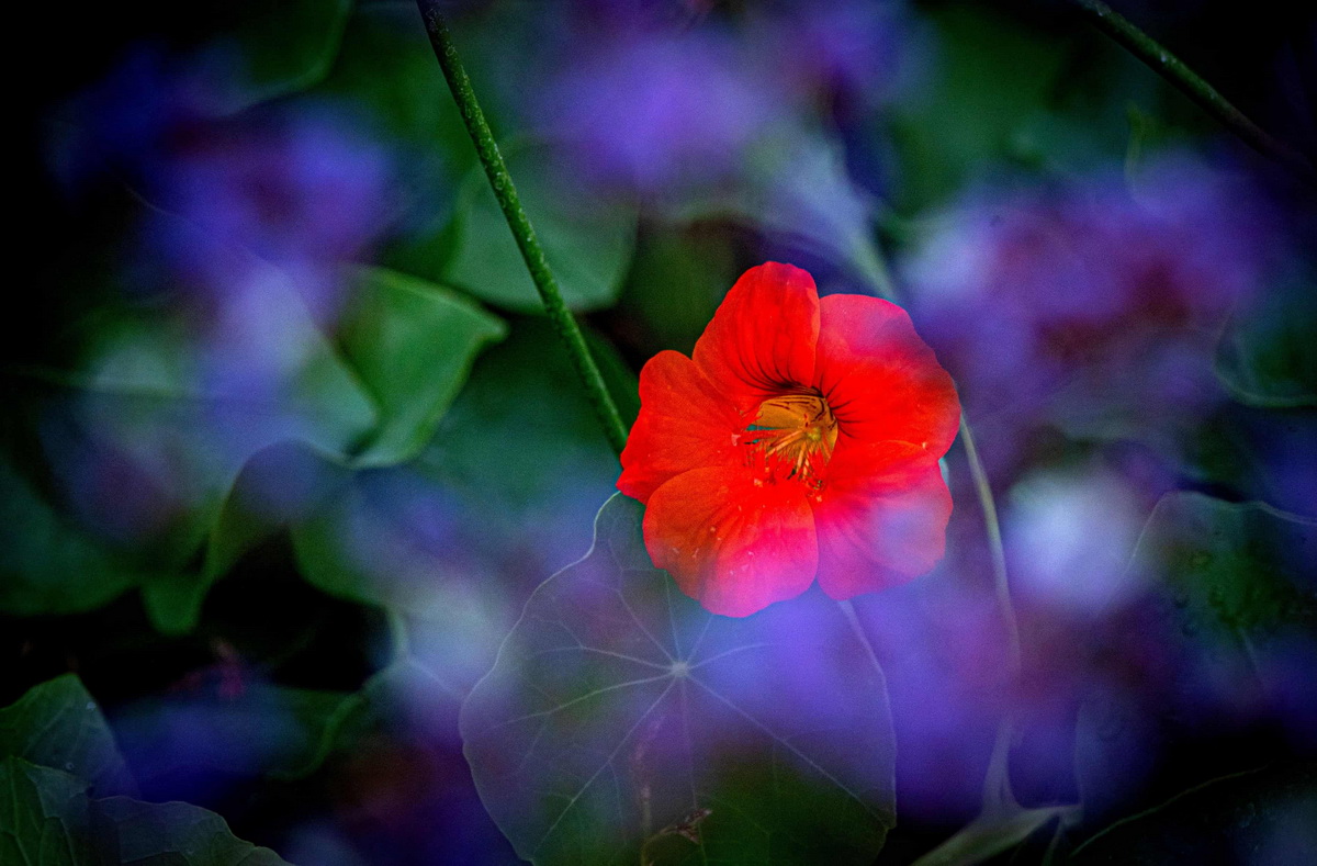 Калифорния, США. В пригородном саду в Пласентии цветёт настурция.