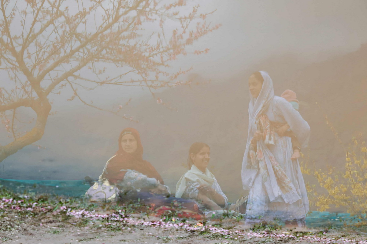 Кашмир, Индия. Семья отражается в воде в тюльпановом саду у подножия горного хребта Забарван в Сринагаре.