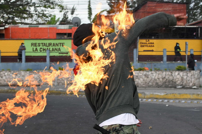 Гватемала-Сити, Гватемала. Молодой человек бросил взрывное устройство во время демонстрации у Университета Сан-Карлос-де-Гватемала за день до выборов президента университета.