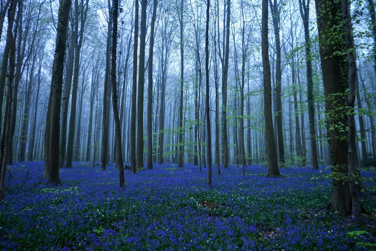В лесу Халлербос, недалеко от Хелле, к югу от Брюсселя, Бельгия, во вторник, 14 апреля 2026 года, цветут колокольчики, также известные как дикие гиацинты.
