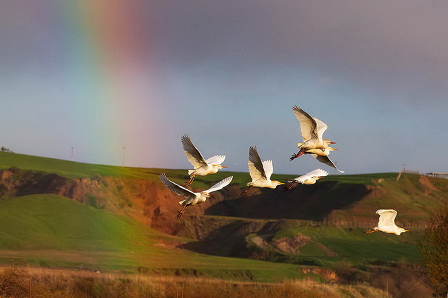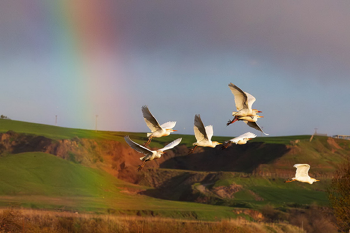 Белые цапли в Диярбакыре, Турция.