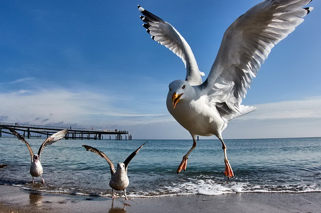 Чайки на пляже Балтийского моря в Германии.