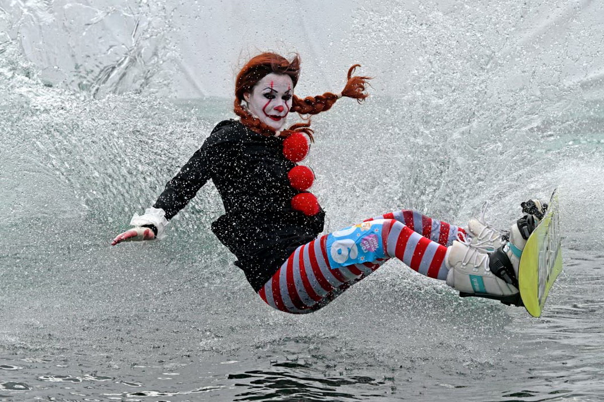 В Красноярске прошло закрытие зимнего сезона «Горнолужник-2026». Участники в костюмах своих любимых персонажей должны были преодолеть с разгона огромную лужу. Одна из участниц попала в объектив Ильи Наймушина (РИА Новости). Теперь это фото – на нашей главной полосе.