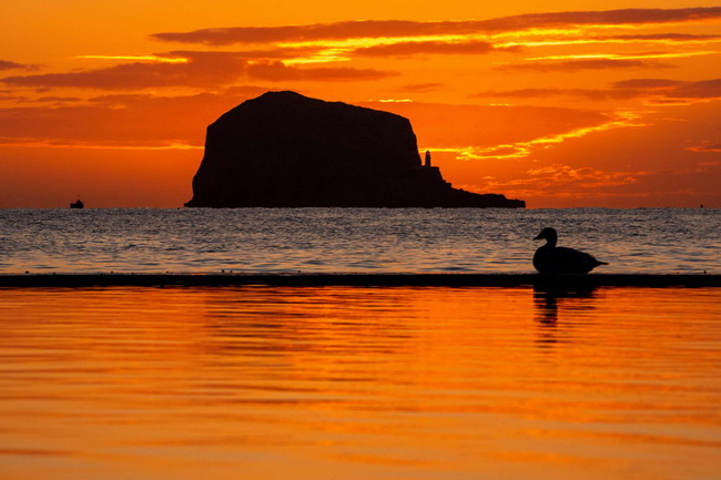 Норт-Бервик, Великобритания. Восход солнца за скалой Басс-Рок в заливе Ферт-оф-Форт к востоку от Эдинбурга. Ещё один прекрасный снимок от знаменитой женщины-фотографа.