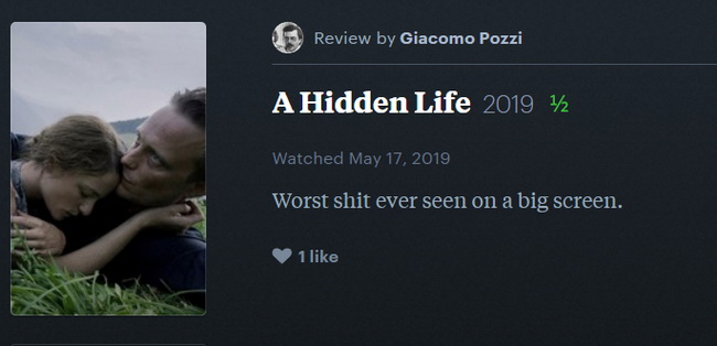 Похоже, надо готовиться к громкому свержению ещё одного авторитета. Скоро на фестивале покажут фильм американца Теренса Малика «Скрытая жизнь» (A Hidden Life). Кое-кто из критиков уже успел его посмотреть. Итальянец Джакомо Поцци разразился самой короткой в истории рецензией: