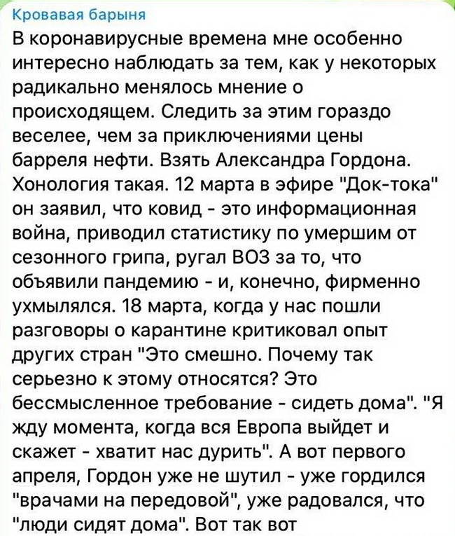 Видимо, после этого Собчак стала настолько токсичной, что Эрнст не мог больше пускать её в эфир. Программа стала выходить реже, и вёл её исключительно Гордон, поднаторевший в теме коронавируса. Рейтинг, правда, не поднялся. Лучший был зафиксирован 22 апреля, когда «Док-Ток» смотрели 2,6 процента россиян старше четырёх лет.