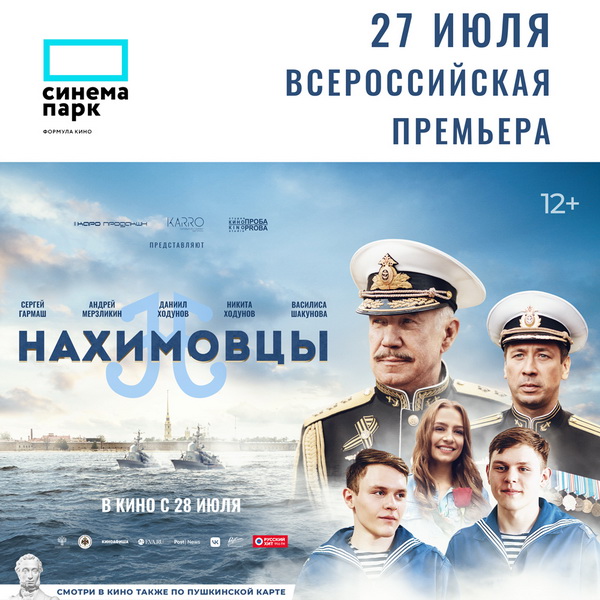 «Нахимовцы». 27 июля – премьера фильма Олега Штрома в преддверии Дня Военно-морского флота России. Это история о силе настоящей дружбы и взрослении с Андреем Мерзликиным и Сергеем Гармашом.