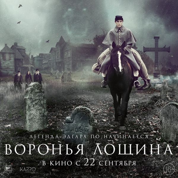«Воронья лощина». С 22 сентября мистический триллер, снятый по мотивам реальных событий из жизни Эдгара По. Дело происходит в 1830 году, когда будущий великий писатель был ещё юным кадетом.