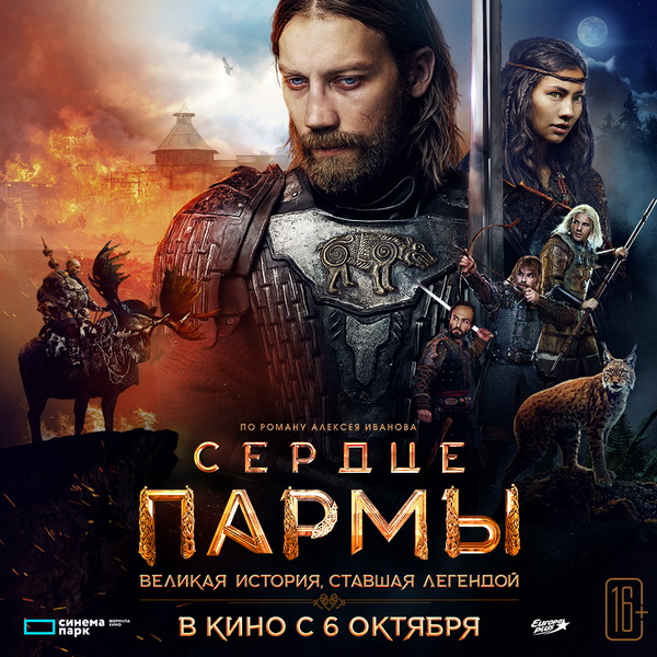 «Сердце Пармы». 5 октября главное кинособытие года – всероссийская премьера эпической экшн-драмы по одноименному бестселлеру Алексея Иванова. Главный герой проходит путь от молодого князя до хитроумного и беспощадного к врагам воина.