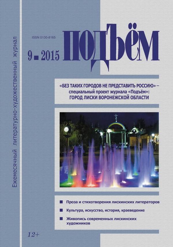 Сентябрьский номер журнала «Подъём» являет собой очередной этап развития специального редакционного проекта «Без таких городов не представить Россию». Он посвящен культуре и истории города Лиски Воронежской области. Наряду с прозой и поэзией панорама выпуска включает в себя материалы, ознаменованные юбилеем Победы, обращенные к древним истокам лискинской земли, историко-бытовые и натурфилософские, связанные с духовным возрождением России и представляющие читателю примечательные подробности жизни знаменитых земляков.