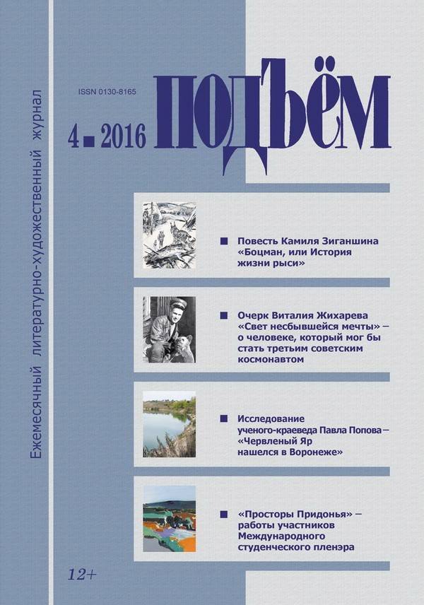 Апрельский выпуск журнала «Подъём» открывается циклом стихотворений Владимира Скифа (Иркутск). В этих строках органично соединились гражданские мотивы с глубоко затаенными переживаниями человеческой души в начале XXI века. Поэтический раздел журнала представлен также именами Юрия Могутина (Москва) и Игоря Лукьянова, Сергея Балиева (Ирбит, Свердловская область) и Никиты Брагина (Москва). Стихи Натальи Косякиной в рубрике «Молодые голоса» соседствуют с мемориальным циклом лирики Светланы Руденченко.