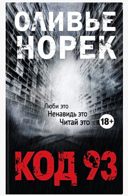 Издательство «Эксмо» выпустило в русском переводе «Код 93» Оливье Норека (Olivier Norek, Code 93). Эта книга берёт в плен с первых же строк. Она погружает читателя в неприукрашенный мир, в котором живут миллионы людей, порой не заслуживающих звания маргиналов.