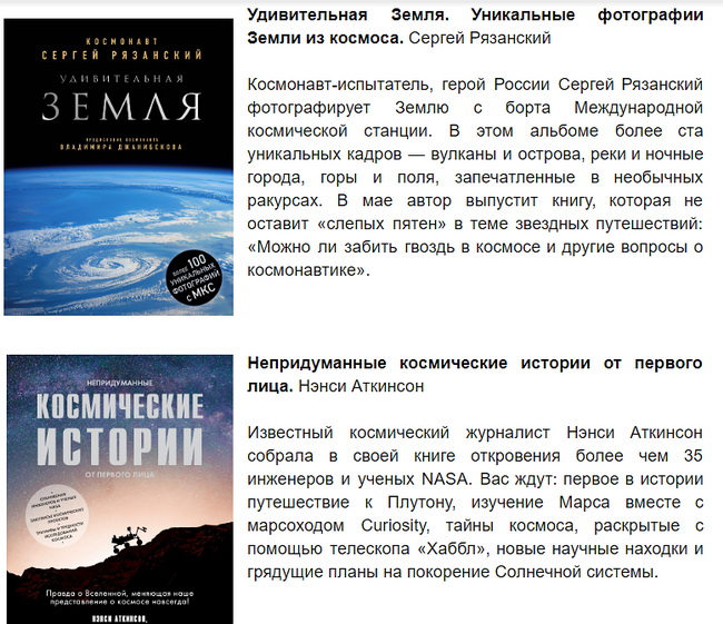 В честь Дня космонавтики издательство «Бомбора» (импринт «Эксмо») представило подборку книг о космосе. В них есть всё, что вы любите: нереальная красота, запечатлённая в фотографиях, закулисье космической индустрии, загадки Вселенной. Эти книги либо недавно вышли, либо скоро появятся в книжных магазинах.