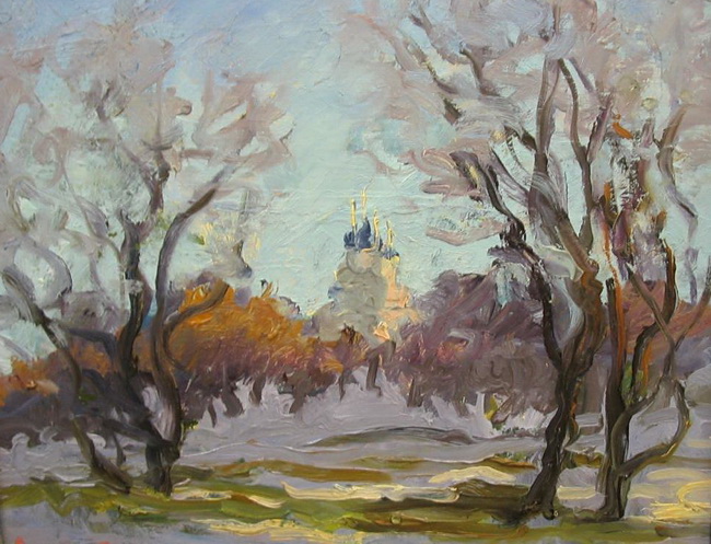 Городские и южные пейзажи, роспись большого купола храма Христа Спасителя, жанровые сюжеты, мозаика... Приглушенная палитра и точный рисунок позволяют художнику одухотворять окружающий мир как-то неуловимо и ненавязчиво. И словно воплощая заветы своего первого учителя рисования, он видит дорогое в неброском.