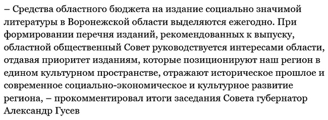 Такое решение было принято в ходе заседания областного общественного Совета по изданию социально значимой и представительской литературы при департаменте культуры Воронежской области.