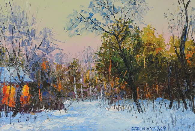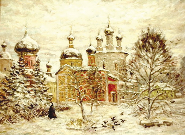 Летняя и зимняя природа, храмы, портреты и натюрморты – везде присутствует затягивающее зрителя в картину, как будто сквозящее, пространство.