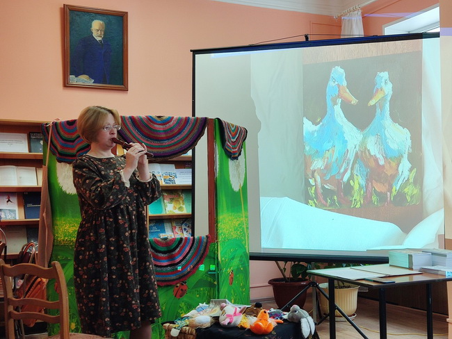 Стихи Дюжинковой адресованы и детям, и взрослым. Их можно читать, разыгрывать по ролям и даже петь. Всё это актриса продемонстрировала во время встречи с юными читателями Никитинской библиотеки. Ребята с удовольствием включились в процесс: играли в игры, отгадывали загадки, пробовали себя в качестве артистов в кукольном спектакле по сказке «Маша и медведь». Сопровождали действие музыкальные зарисовки в исполнении пианистки Инги Гадецкой.