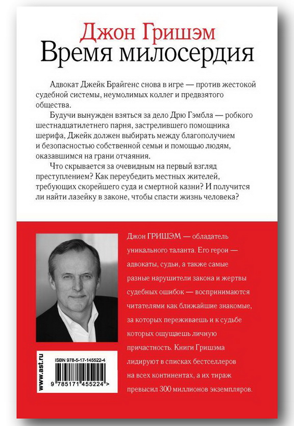 Наполненный всеми судебными махинациями, провинциальными интригами и поворотами сюжета, которые стали визитной карточкой мастера юридического триллера, роман «Время милосердия» решительно подтверждает репутацию Джона Гришэма как любимого рассказчика Америки.