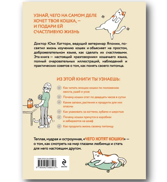 Подарочное издание для всех любителей кошек — японский бестселлер с очаровательными цветными иллюстрациями. Узнай, чего на самом деле хочет твоя кошка — и подари ей счастливую жизнь. Автор – ветеринар и литератор Юки Хаттори.