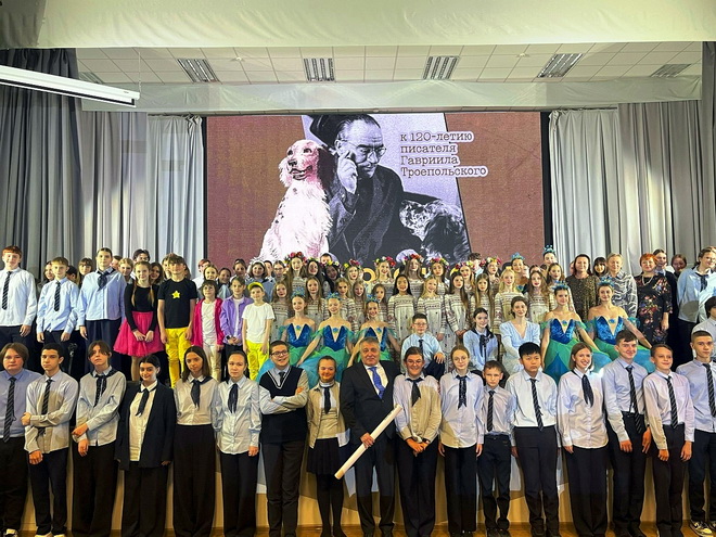 Школьники 102-й школы подготовили и прочитали стихотворение Анатолия Ионкина «Идёт ноябрём Троепольский», а коллектив образцового хореографического ансамбля «Незнакомка» детской школы искусств № 6 исполнил несколько ярких танцев.