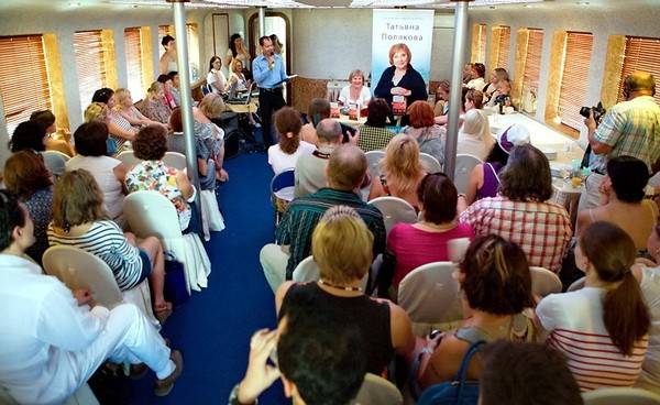Юбилейные торжества и презентация книги представителям СМИ и гостям издательства «Эксмо» состоялись на борту уютного теплохода «Уникум». В жаркий солнечный день речная прогулка пришлась как нельзя кстати.
