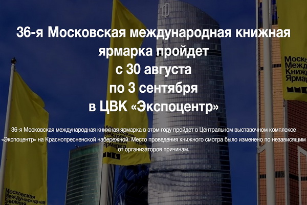 Очередная, 36-я Московская международная книжная ярмарка будет проходить с 30 августа по 3 сентября 2023 года в «Экспоцентре» на Краснопресненской набережной. Правительство Москвы поддержит проведение ММКЯ. Об этом сообщили в среду в пресс-службе мэра столицы и правительства города.