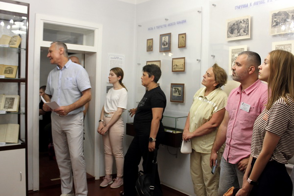 В Доме-музее И. С. Никитина 12 августа состоялось открытие выставки «А.В. Кольцов — красноречивый мир графики». Сначала зрители разместились во дворе на добротных лавочках, которые прямиком из 19 века. Заведующая отделом экспозиционно-выставочной деятельности Ольга Уразова начала презентацию выставки с того, что литературный музей имени И.С. Никитина готовится к важной дате. В 2024 году музей будет праздновать 200-летие со дня рождения Ивана Саввича и 100-летие музея.