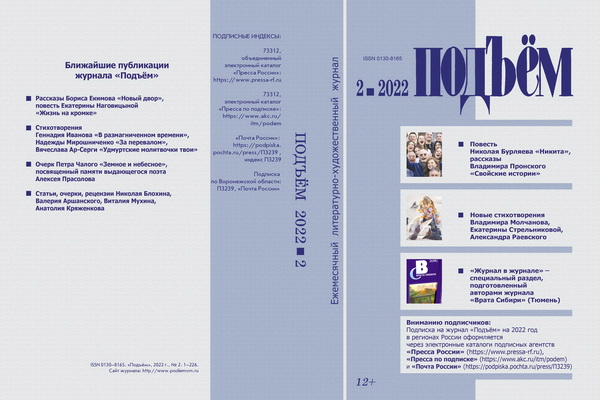 Февральский номер журнала «Подъём» открывается документальной повестью Николая Бурляева (Москва) «Никита», в центре которой – фигура известного кинорежиссёра Никиты Михалкова.