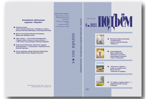 Августовский номер журнала «Подъём» открывается новыми рассказами Бориса Екимова (Волгоград) «Хочу жить!» и «Старый дом». Как всегда, внимание автора направлено на события, из которых складывается наша с вами сегодняшняя жизнь. В рассказах взыскующе присутствует одна общая важная черта: писатель через частности быта глубинно видит драматические перипетии изменений в человеческом бытие.