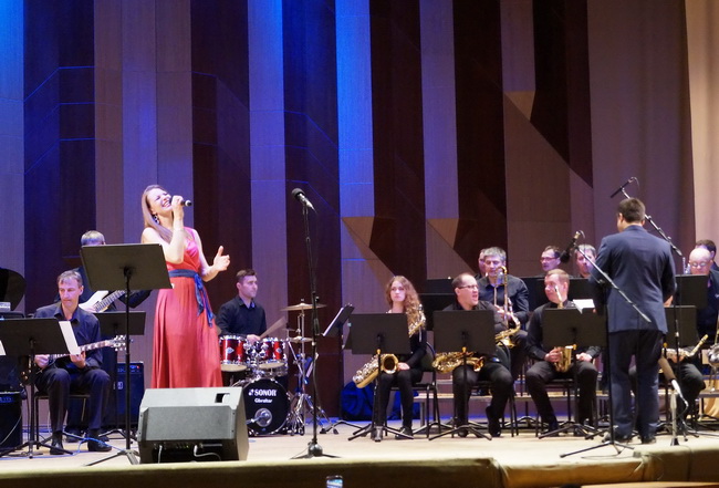Открыли концерт Биг-бенд воронежской филармонии и солистка Татьяна Спасибухова. Чистый вокал, отличный английский… А возможно ли петь джаз на русском или каком-то другом языке? Именно это вопрос мы задали Татьяне.