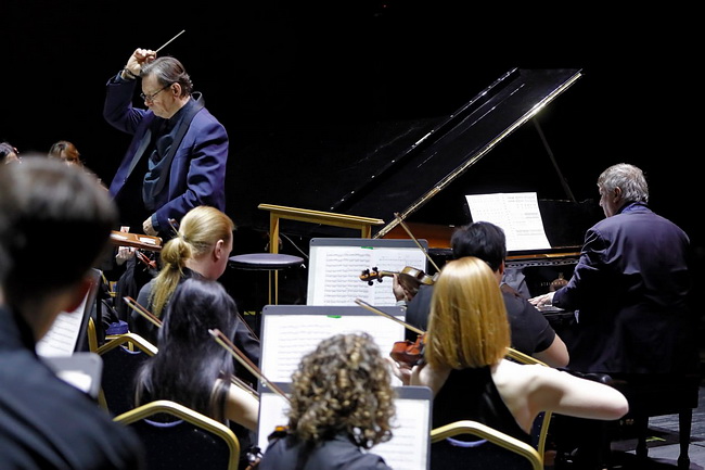 На сцене Воронежского концертного зала (ВКЗ) 28 февраля встретились два выдающихся представителя современной русской музыки: композитор Александр Чайковский и пианист Борис Березовский. В исполнении симфонического оркестра ВКЗ под управлением Юрия Андросова прозвучал 4-й концерт для фортепиано с оркестром и седьмая симфония «Карантинная».