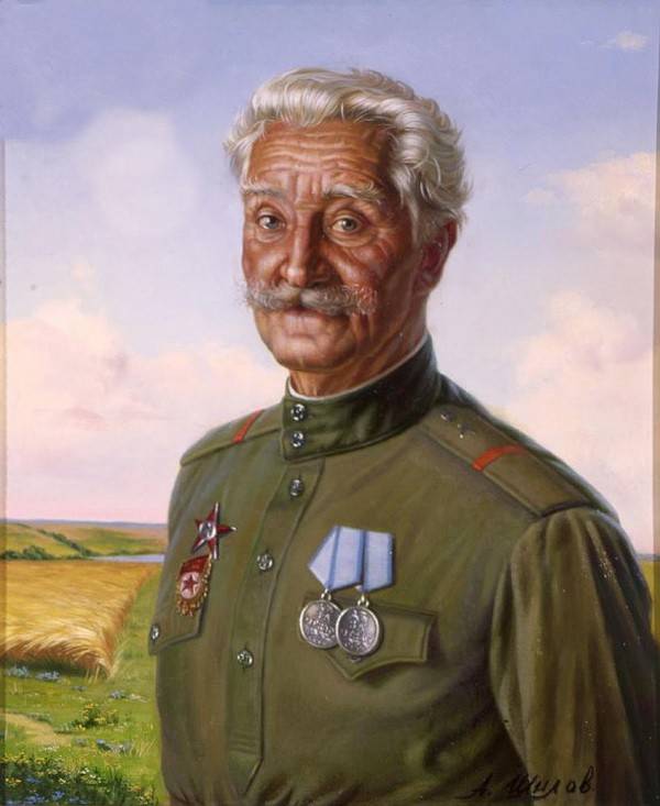В серии портретов мастер запечатлел лучшие духовные черты наших ветеранов – мужество, благородство, патриотизм. Гимн мужеству, героизму, силе человеческого духа звучит в картинах «В День Победы. Пулемётчик П.П. Шорин», «Они сражались за Родину! (Участник военного парада 7 ноября 1941г. В.С. Чумаков)», «Непобедимый». Очень интересны и выразительны представленные на выставке портреты выдающихся деятелей культуры, участников Великой Отечественной войны - народного артиста СССР Е.С. Матвеева, драматурга В.С. Розова, композитора Я.А. Френкеля, народного артиста СССР В.А. Этуша, народного артиста России пианиста Д.М. Лернера и других. Портреты служителей церкви, прошедших войну, отражают особую силу русского воина, его духовную мощь. А в созданных художником образах епископа Василия (Родзянко) и дьякона, отца Николая таятся доброта и вера, которые и от пуль защитили, и путь жизненный указали.