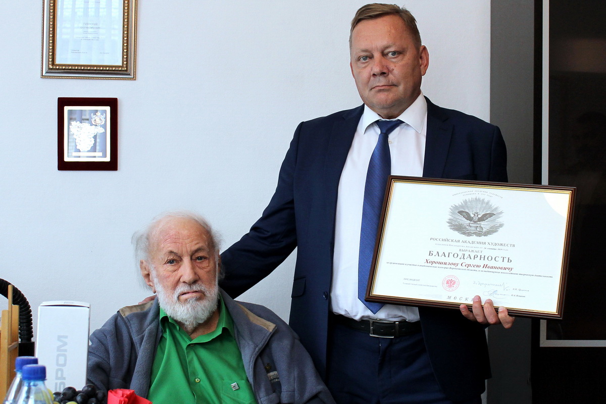 24 октября в Воронежском художественном училище состоялась церемония награждения главы администрации Острогожского муниципального района Воронежской области Сергея Хорошилова Благодарственным письмом Российской академии художеств.