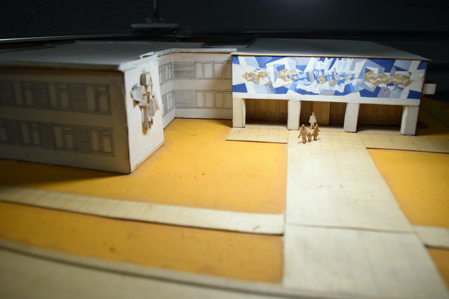 Во время семинара Юрий Утенков работал над эскизом мозаики для фасада школы искусств, только что построенной в Нововоронеже. Его эскиз был одобрен, и в 1982 году мозаичное панно украсило фасад здания школы.