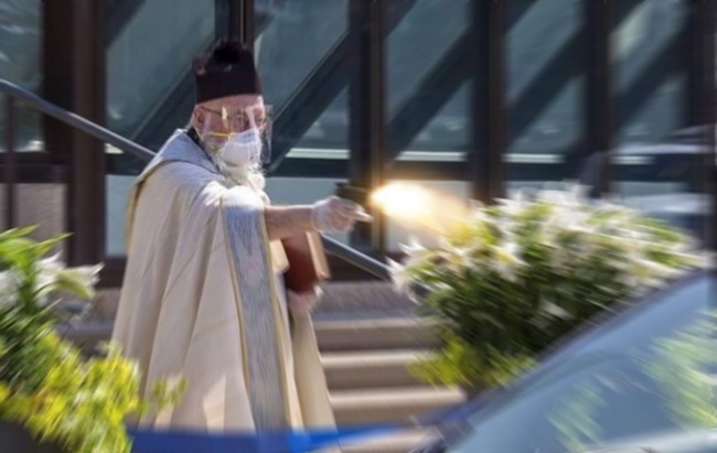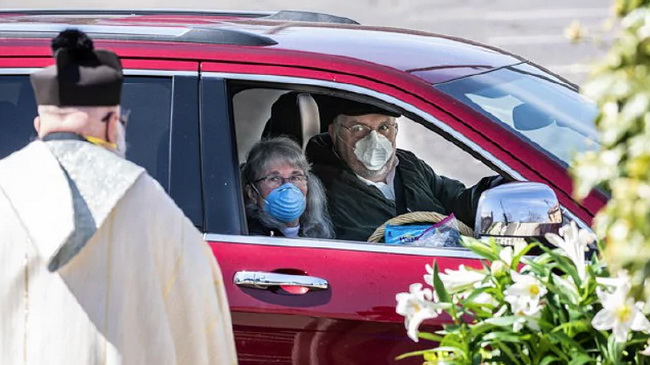 Священник носил перчатки и маску для безопасности, водители тоже.