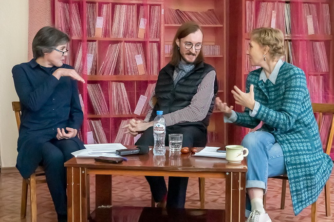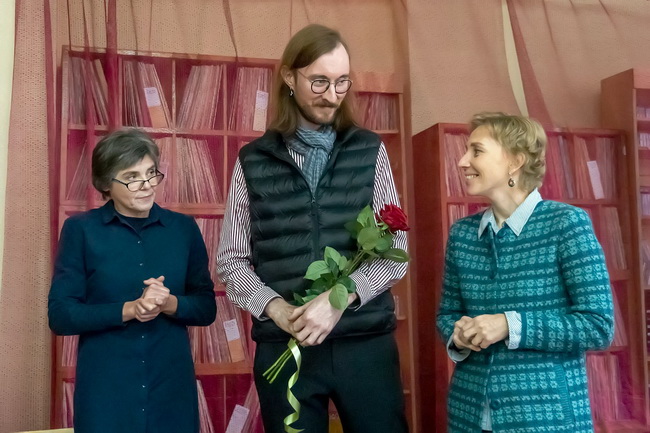 Певец стал героем проекта «Седьмой ряд», который Никитинская библиотека реализует совместно с факультетом журналистики ВГУ. Встречу провели старший преподаватель кафедры электронных СМИ и речевой коммуникации Наталья Гааг и библиотекарь отдела музыкально-нотной литературы ВОУНБ имени Никитина Елена Фомина.